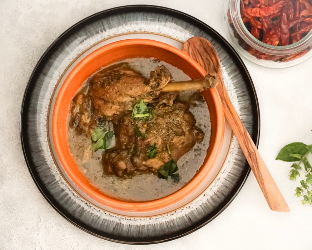 - Add the chopped herbs to the chicken and add around 2 cups of boiling water. Close the lid and cook the chicken for another 30 minutes. I used a pressure cooker so it cooks slightly quicker than 30 minutes.